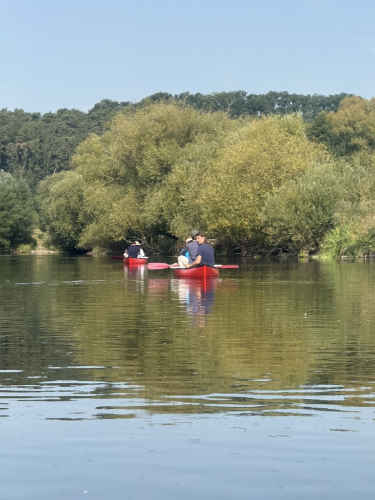 Als Ausgleich zum anspruchsvollen Alltag in der Um­schulung zum Fach­informatiker für Anwendungs­entwicklung organisieren wir regelmäßig Freizeitaktivitäten. Dieses Mal stand eine Kanutour auf der Fulda auf dem Programm. Die Kanus haben wir bei der Fulle-Marie in Fuldabrück-Bergshausen geliehen.