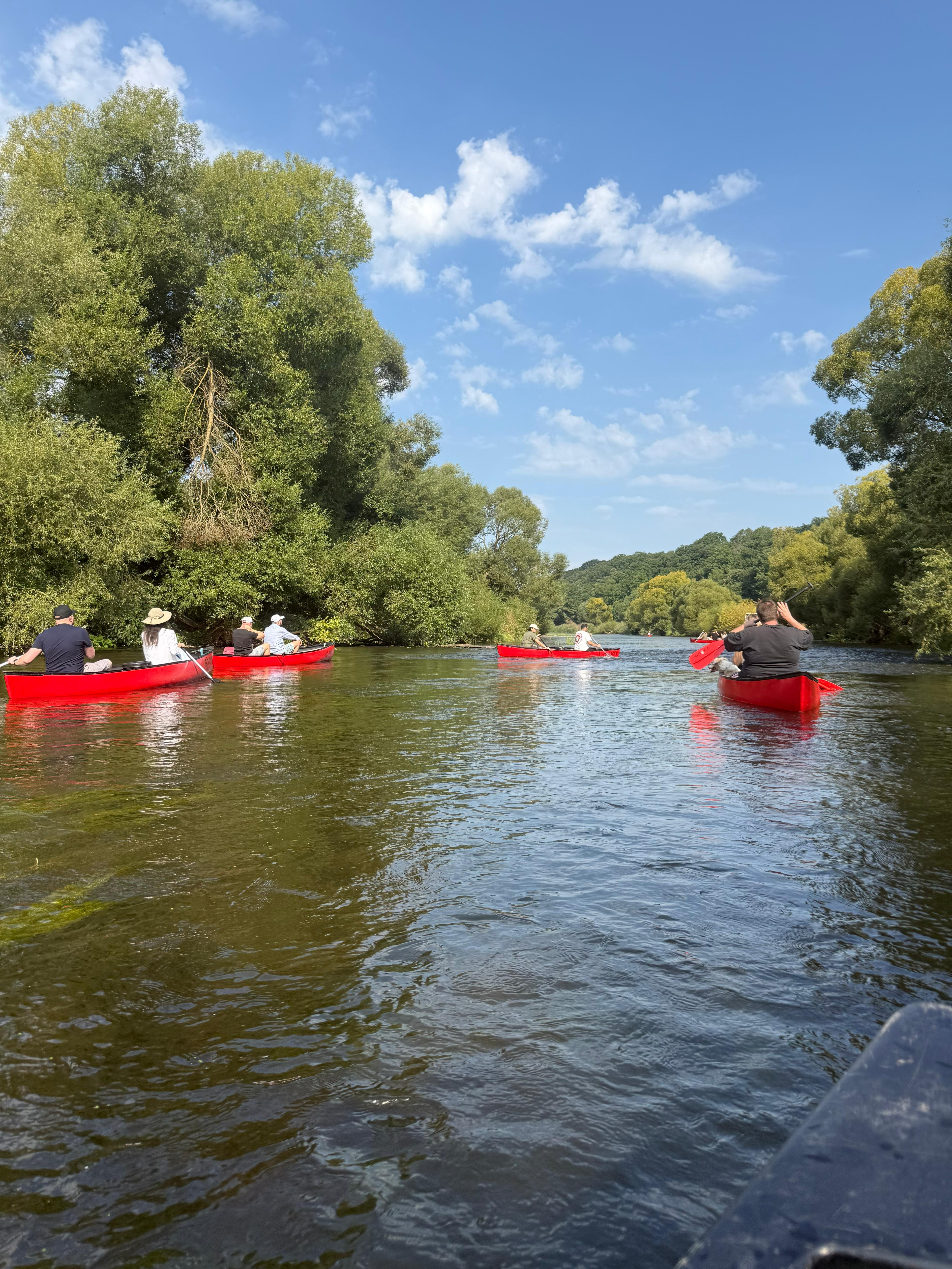 Bei bestem Wetter trafen wir uns, um gemeinsam ein paar schöne Stunden auf dem Wasser zu verbringen. Das Wasser war die meiste Zeit ruhig, aber es gab auch ein paar Stellen, an denen wir ganz schön paddeln mussten, um nicht stecken zu bleiben oder zu kentern.